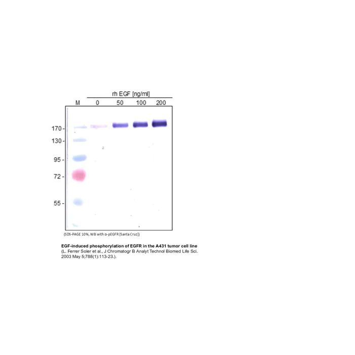 | Biological Activity | The biological activity was determined by the ability to induce EGF receptor phosphorylation in the A431 tumor cell line [Soler et al, J Chromatography B, 788, 2003] and the induction of proliferation in NHDF cells (Normal Human Dermal Fibroblasts). |